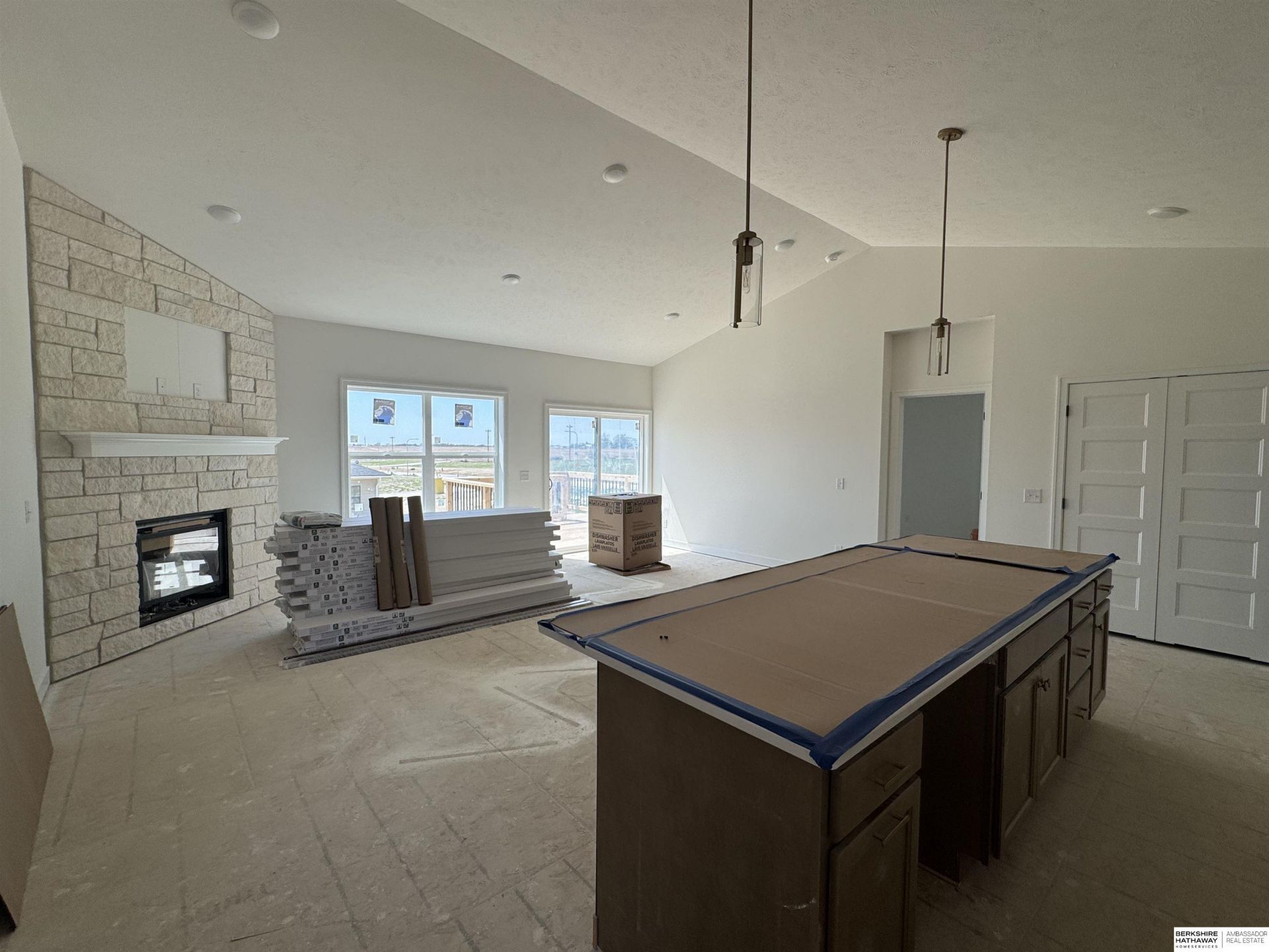 Fantastic Fraser Ranch built by The Home Company featuring 4 bedrooms, 3 bathrooms, and a 3-car garage with over 2,500 finished sq ft. This open floor plan showcases a spacious kitchen with a huge center island, quartz countertops, gas range, 3x12 subway tile backsplash, and a generous pantry. The inviting living room offers vaulted ceilings and a corner gas fireplace with stone to ceiling. The primary suite includes a tray ceiling with fan, tiled shower, double sinks, and a walk-in closet. The finished lower level provides a large rec room, additional bedroom, and 3/4 bath. Situated on a walkout lot with deck and extended patio-perfect for outdoor enjoyment. Under Construction approx completion is June 2026.